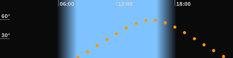 | Höchster Stand (Kulmination) | 15:35 Uhr (h = 59,4°) |