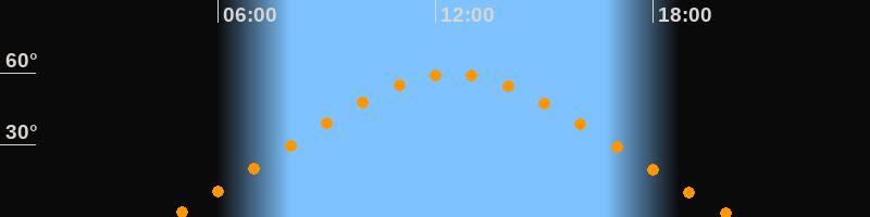 | Höchster Stand (Kulmination) | 12:28 Uhr (h = 59,4°) |