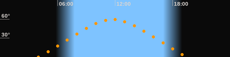 | Höchster Stand (Kulmination) | 11:45 Uhr (h = 59,4°) |