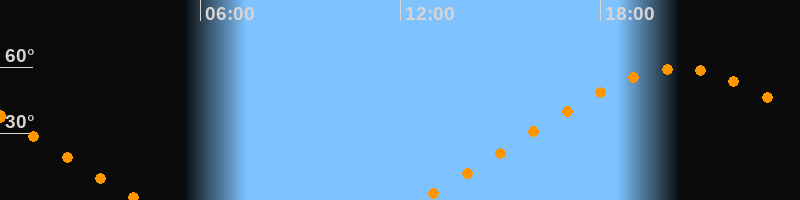 | Aufgang | 12:31 Uhr im Nordosten (αAz = 56,3°) |