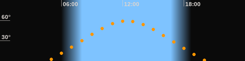 | Höchster Stand (Kulmination) | 12:24 Uhr (h = 59,4°) |