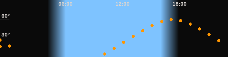 | Höchster Stand (Kulmination) | 18:09 Uhr (h = 59,4°) |