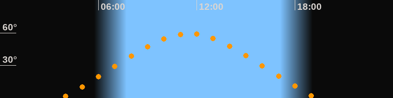 | Höchster Stand (Kulmination) | 11:32 Uhr (h = 59,4°) |