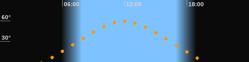 | Höchster Stand (Kulmination) | 11:56 Uhr (h = 59,4°) |