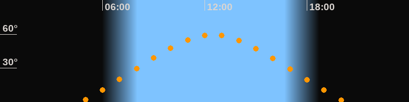 | Höchster Stand (Kulmination) | 12:29 Uhr (h = 59,4°) |