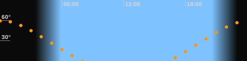 Höchster Stand (Kulmination)00:08 Uhr (h = 59,4°)