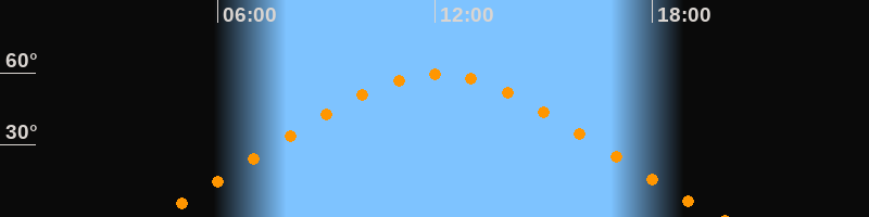 | Höchster Stand (Kulmination) | 12:03 Uhr (h = 59,4°) |