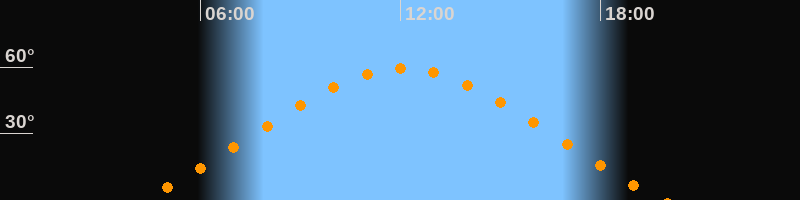 | Höchster Stand (Kulmination) | 12:04 Uhr (h = 59,4°) |