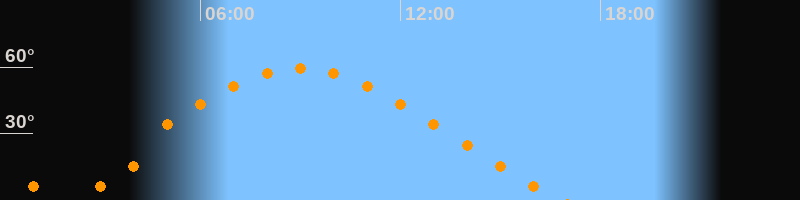 | Höchster Stand (Kulmination) | 09:00 Uhr (h = 59,4°) |