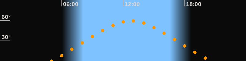| Höchster Stand (Kulmination) | 12:46 Uhr (h = 59,4°) |