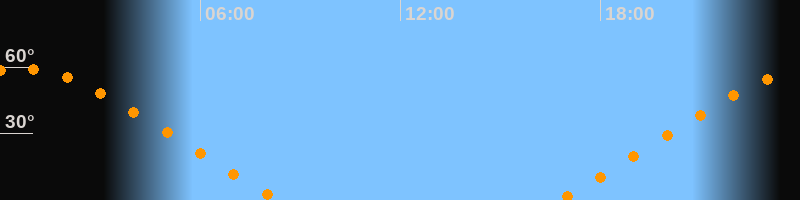 | Höchster Stand (Kulmination) | 00:32 Uhr (h = 59,4°) |