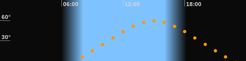 Höchster Stand (Kulmination)15:01 Uhr (h = 59,4°)
