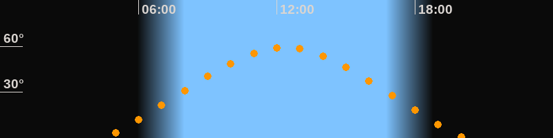 | Höchster Stand (Kulmination) | 12:20 Uhr (h = 59,4°) |