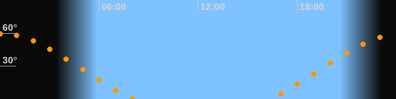 | Untergang | 08:03 Uhr im Nordwesten (αAz = 303,7°) |