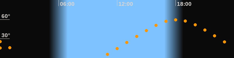 Höchster Stand (Kulmination)18:03 Uhr (h = 59,4°)