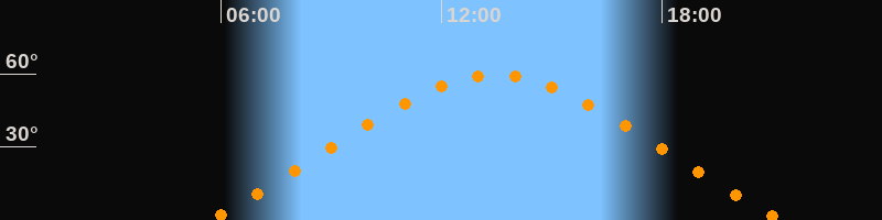 | Höchster Stand (Kulmination) | 13:27 Uhr (h = 59,4°) |