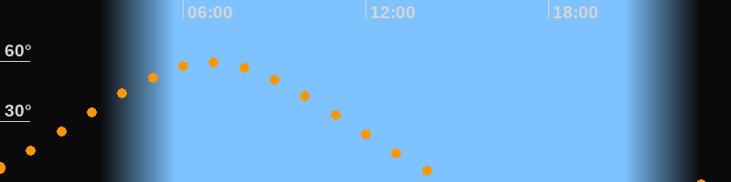 | Höchster Stand (Kulmination) | 06:55 Uhr (h = 59,4°) |