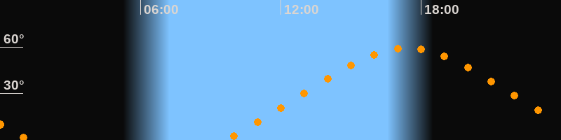 Höchster Stand (Kulmination)17:24 Uhr (h = 59,4°)