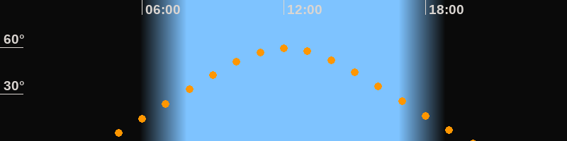 | Höchster Stand (Kulmination) | 12:05 Uhr (h = 59,4°) |