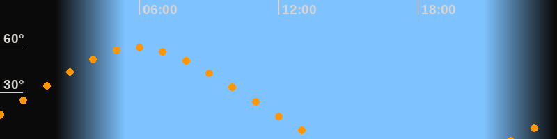 | Höchster Stand (Kulmination) | 05:56 Uhr (h = 59,4°) |