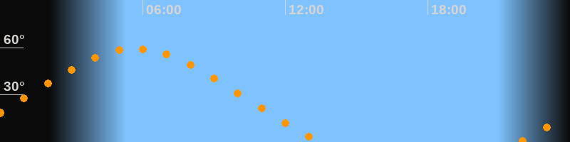 | Höchster Stand (Kulmination) | 05:40 Uhr (h = 59,4°) |