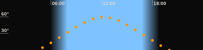 | Höchster Stand (Kulmination) | 12:14 Uhr (h = 59,4°) |