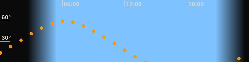 | Höchster Stand (Kulmination) | 06:13 Uhr (h = 59,4°) |