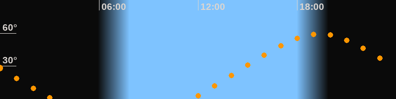 | Höchster Stand (Kulmination) | 19:20 Uhr (h = 59,4°) |