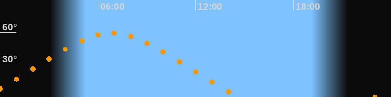 | Höchster Stand (Kulmination) | 06:50 Uhr (h = 59,4°) |