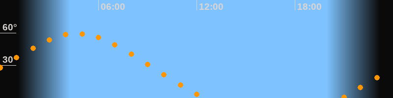 | Untergang | 12:30 Uhr im Nordwesten (αAz = 303,7°) |