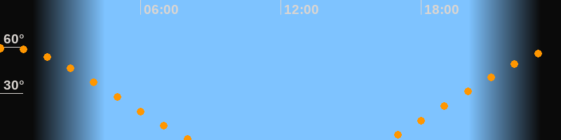 | Höchster Stand (Kulmination) | 00:17 Uhr (h = 59,4°) |