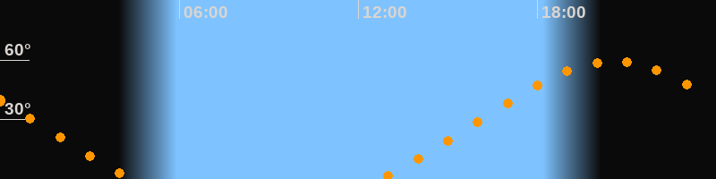 | Aufgang | 12:43 Uhr im Nordosten (αAz = 56,3°) |