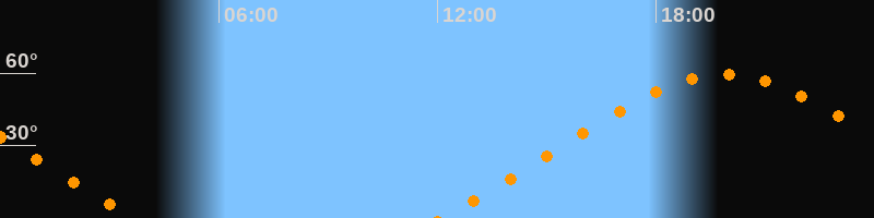 | Höchster Stand (Kulmination) | 19:53 Uhr (h = 59,4°) |