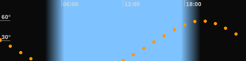 | Aufgang | 11:48 Uhr im Nordosten (αAz = 56,3°) |