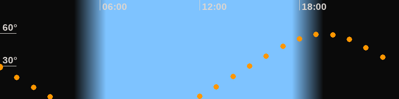 | Höchster Stand (Kulmination) | 19:26 Uhr (h = 59,4°) |