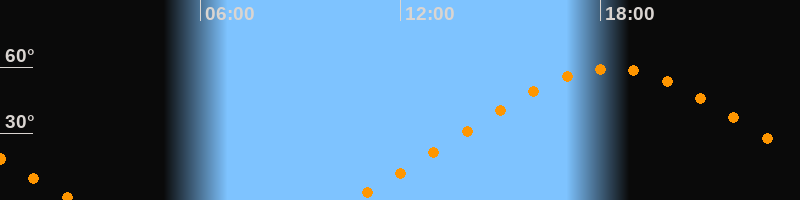 | Höchster Stand (Kulmination) | 18:19 Uhr (h = 59,4°) |