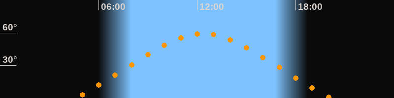 | Höchster Stand (Kulmination) | 12:21 Uhr (h = 59,4°) |