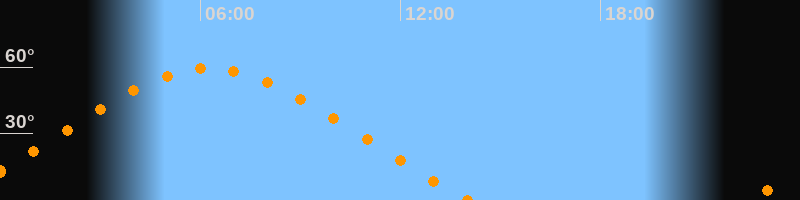 | Höchster Stand (Kulmination) | 06:16 Uhr (h = 59,4°) |