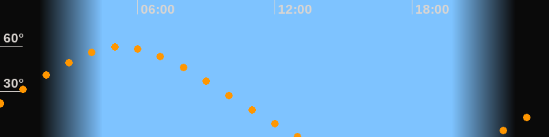 | Höchster Stand (Kulmination) | 05:17 Uhr (h = 59,4°) |