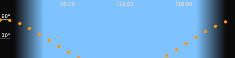 | Höchster Stand (Kulmination) | 00:14 Uhr (h = 59,4°) |