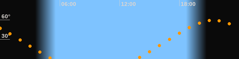 | Untergang | 05:18 Uhr im Nordwesten (αAz = 303,7°) |