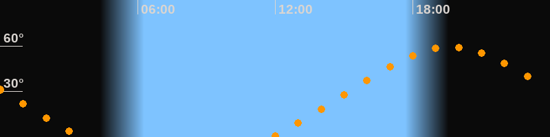 | Höchster Stand (Kulmination) | 19:39 Uhr (h = 59,4°) |
