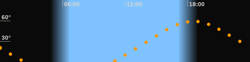 | Höchster Stand (Kulmination) | 18:33 Uhr (h = 59,4°) |