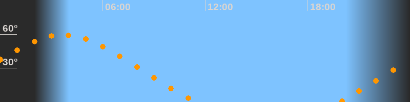 | Untergang | 11:30 Uhr im Nordwesten (αAz = 303,7°) |