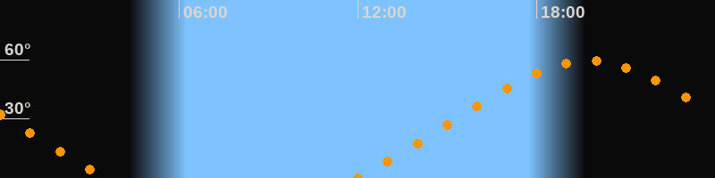 | Höchster Stand (Kulmination) | 19:44 Uhr (h = 59,4°) |