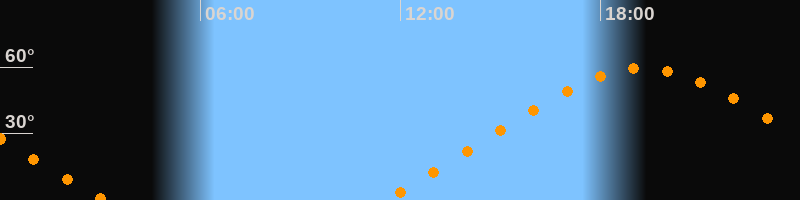 | Höchster Stand (Kulmination) | 19:17 Uhr (h = 59,4°) |