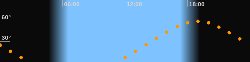 | Höchster Stand (Kulmination) | 18:57 Uhr (h = 59,4°) |