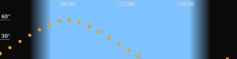| Höchster Stand (Kulmination) | 06:46 Uhr (h = 59,4°) |