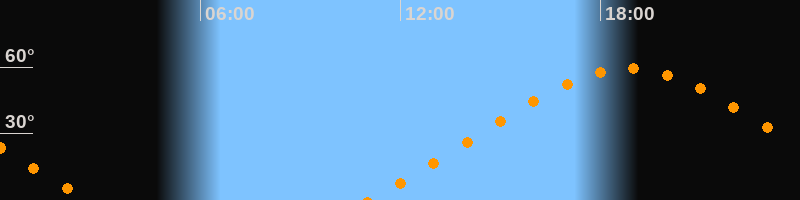 | Höchster Stand (Kulmination) | 18:50 Uhr (h = 59,4°) |