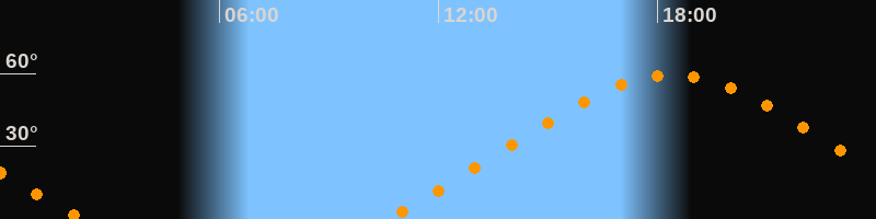 | Höchster Stand (Kulmination) | 18:23 Uhr (h = 59,4°) |